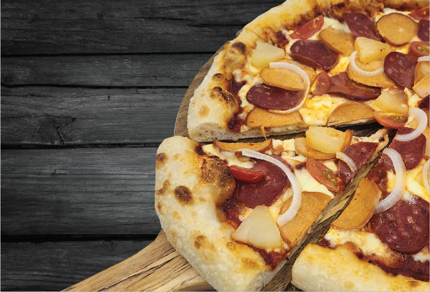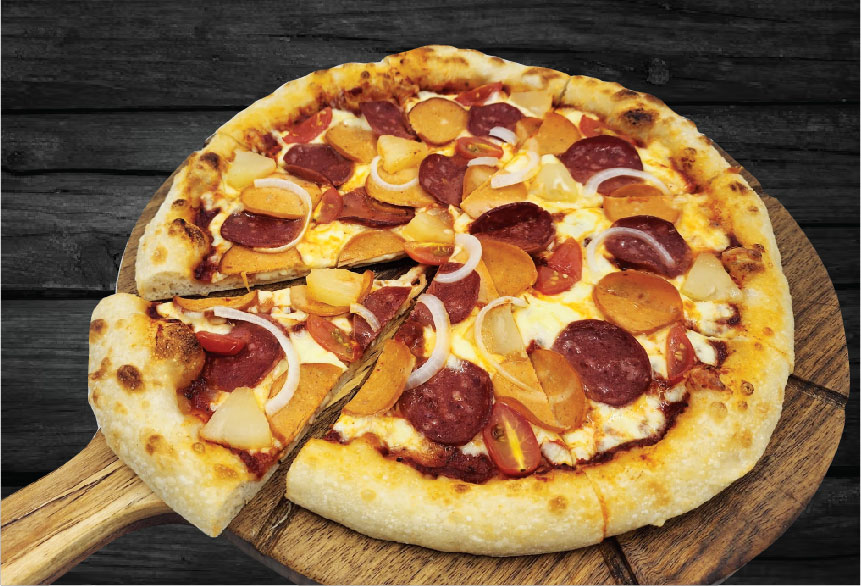 Take5 Signature Sauce, Beef Pepperoni, Chicken Pepperoni, Sliced Mushrooms, Pineapples, Capsicums, Onions, Mozzarella Cheese