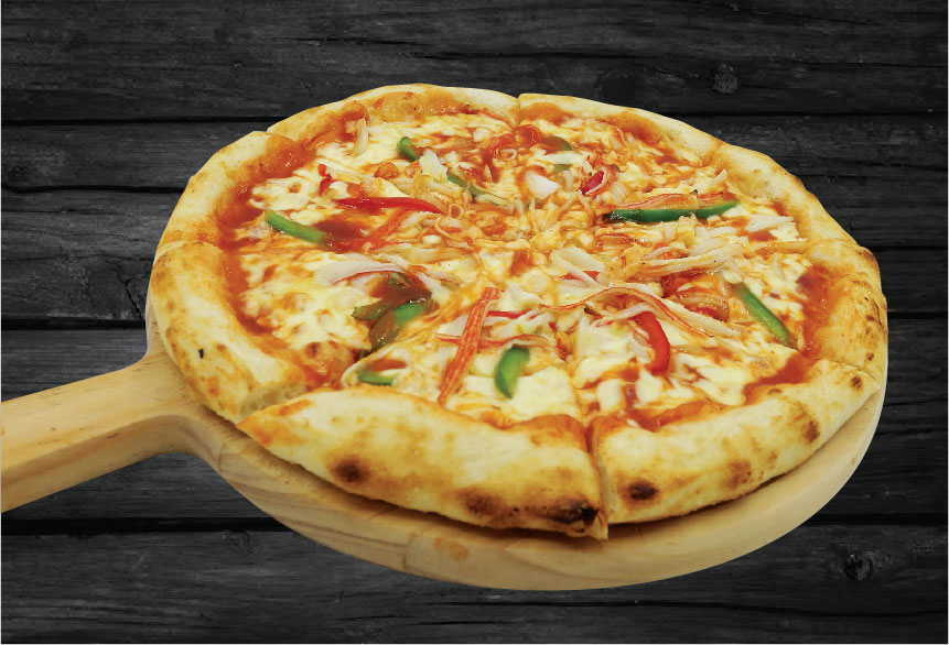 Sweet and Sour Sauce, Tuna, Crab filaments,  Onions, Tomato Cherry, Mozzarella Cheese, Topped with nacho cheese sauce